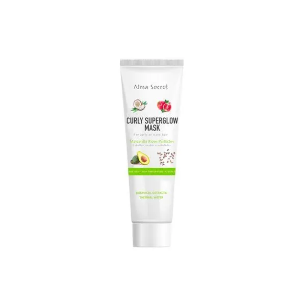 Gracias a su base de agua termal y extractos botánicos como caléndula, aloe vera y pepino, esta mascarilla ofrece una hidratación profunda y una acción antioxidante que protege el cabello del daño externo y el encrespamiento. Alma Secret Curly Superglow Mask es cruelty-free, es ideal para quienes buscan una rutina capilar saludable, respetuosa y altamente efectiva.
