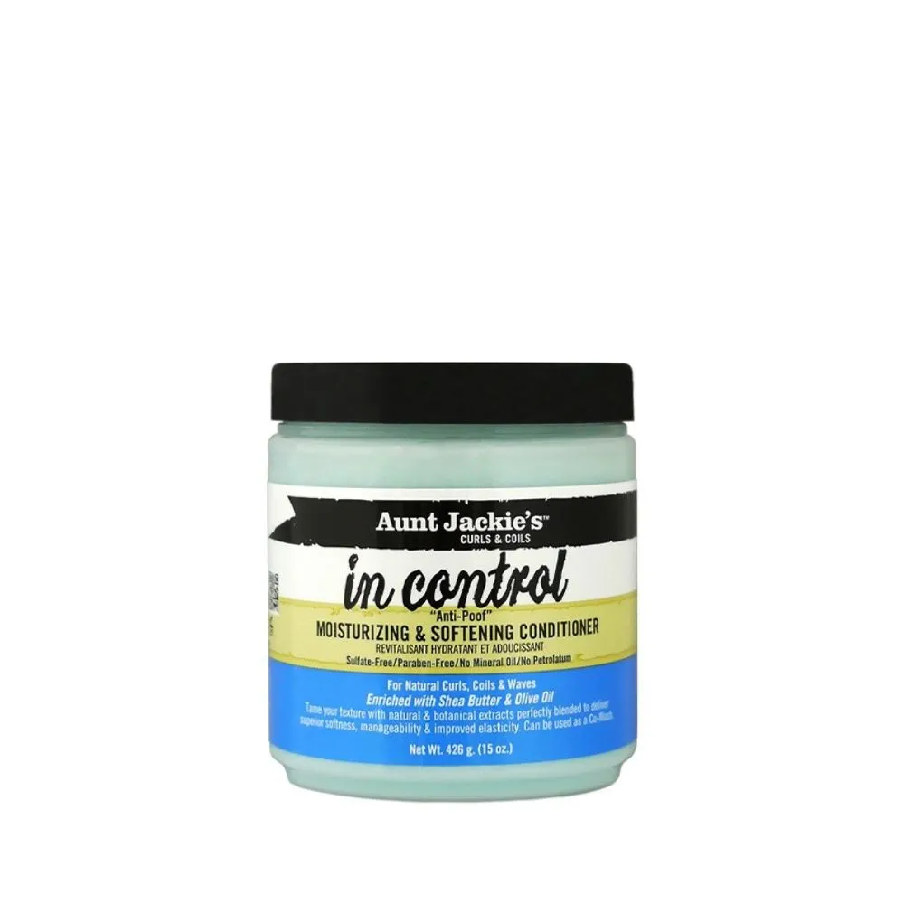 Aunt Jackie´s Curls & Coils In Control 426g es un acondicionador hidratante y suavizante. Nutre y acondiciona de manera profunda el cabello rizado difícil de manejar, deshidratado y frágil. Es un excelente tratamiento para restaurar y acondicionar cualquier tipo de cabello y textura, incluyendo el cabello natural, teñido, desrizado o tratado químicamente. Gracias a su suavidad y propiedades puede ser utilizado a diario. Sin sulfatos. Sin parabenos. Sin aceite mineral ni petrolato. Cabellos naturales, coils & waves.