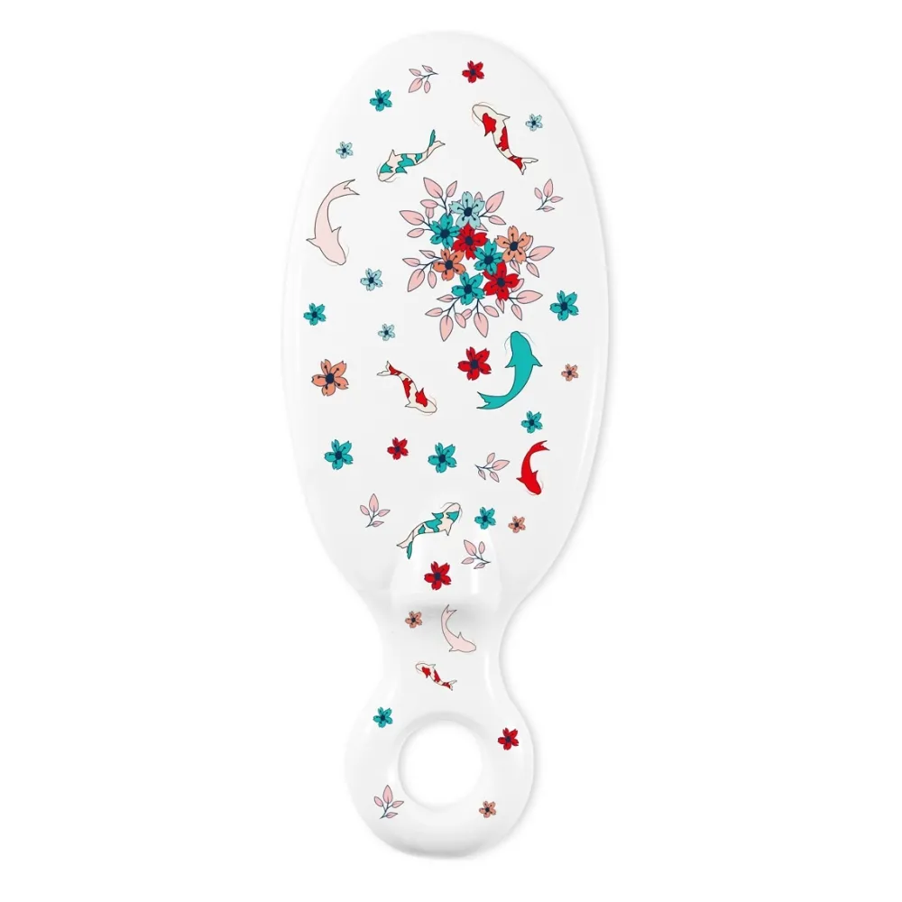 Cepillo de Casalfe que desenreda y escurre el cabello. En tres colores de púas: amarillo (pájaros y mariposas), aguamarina (animales acuáticos) o rojo (flores).