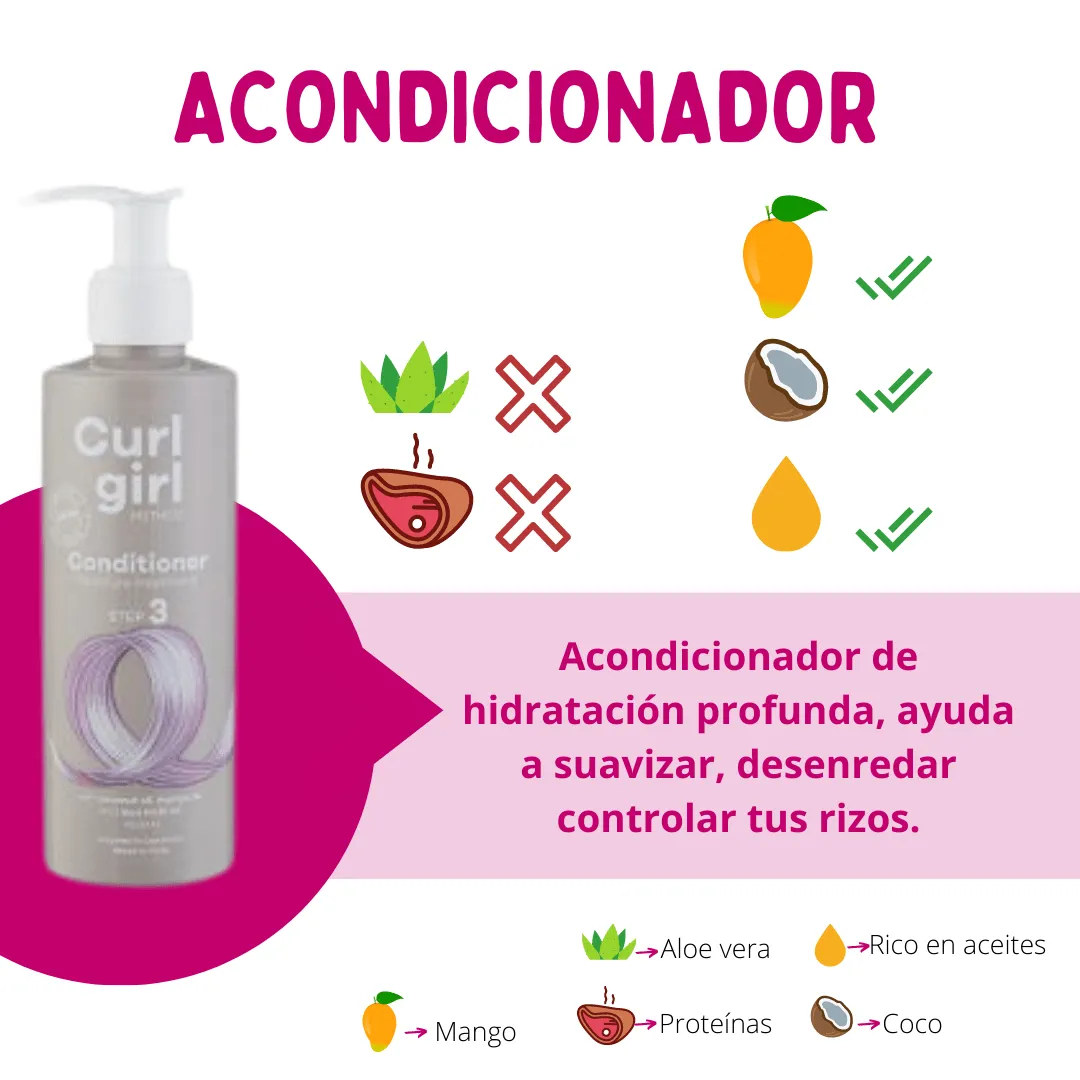 Curl Girl Nordic Nº3 Conditioner Moisture Treatment 200ml este acondicionador de hidratación profunda suaviza y controla tus rizos. Exprima el exceso de agua antes de aplicar el acondicionador en los largos. Dejar actuar 1-2 minutos antes de enjuagar.: spray acondicionador sin enjuague.