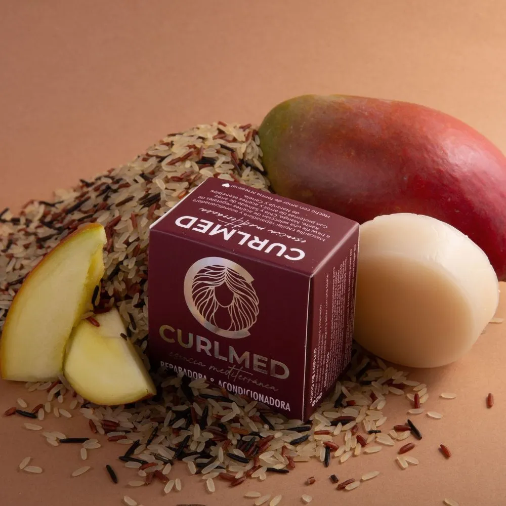Mascarilla Sólida de Proteínas Reparadora CurlMed es un tratamiento capilar innovador en formato sólido de 50 g que limpia, acondiciona y fortalece en un solo paso. Su fórmula natural, vegana y ecológica está enriquecida con proteínas vegetales que reparan la fibra capilar, aportan brillo y reducen la rotura.