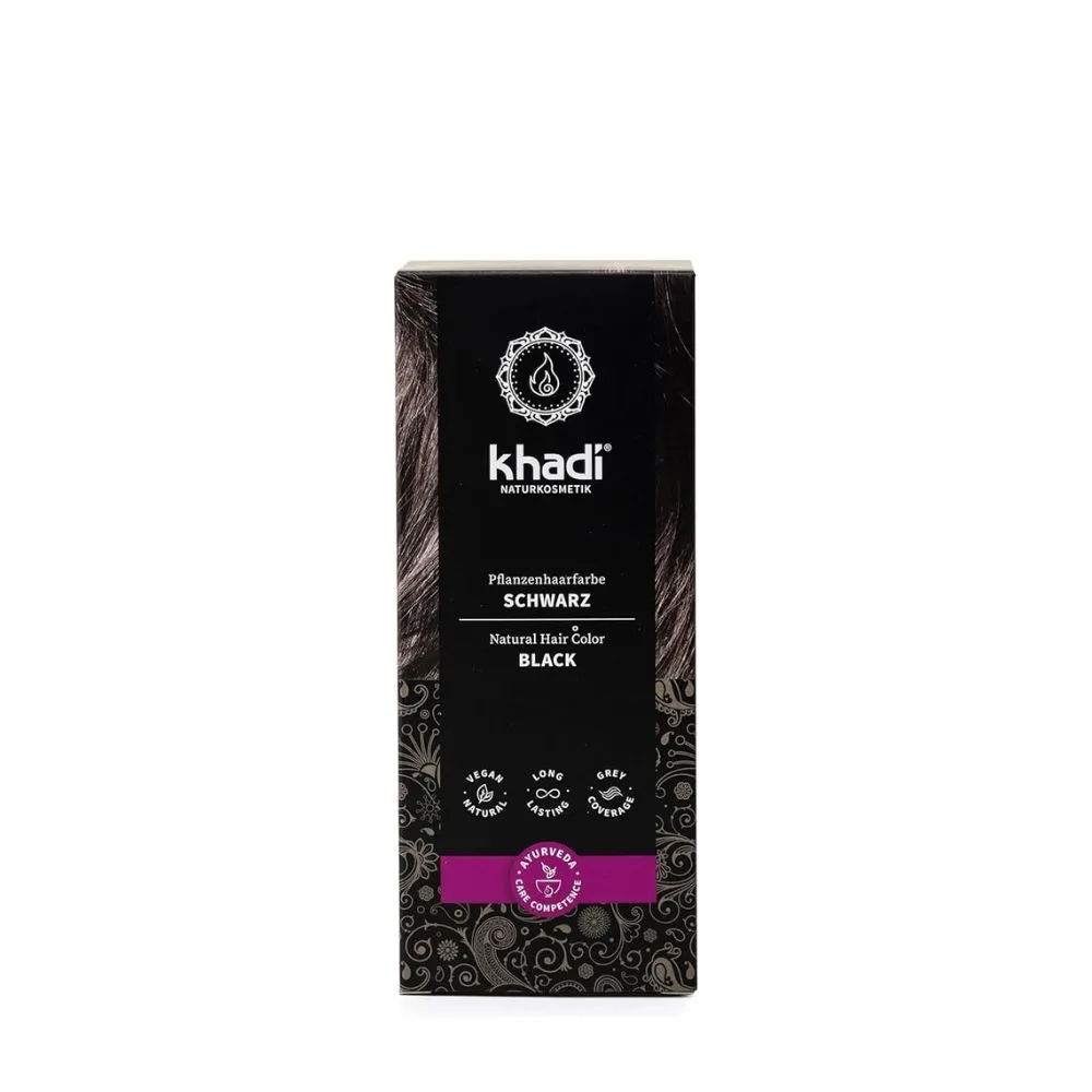 El Tinte ayurveda ecológico Khadi con Henna e Índigo proporciona un tono Negro intenso natural, de larga permanencia, proporciona brillo, volumen y suavidad. Sin amoníaco, agua oxigenada, resorcinol ni colorantes artificiales. Sin PPD, parabenos ni perfumes sintéticos.