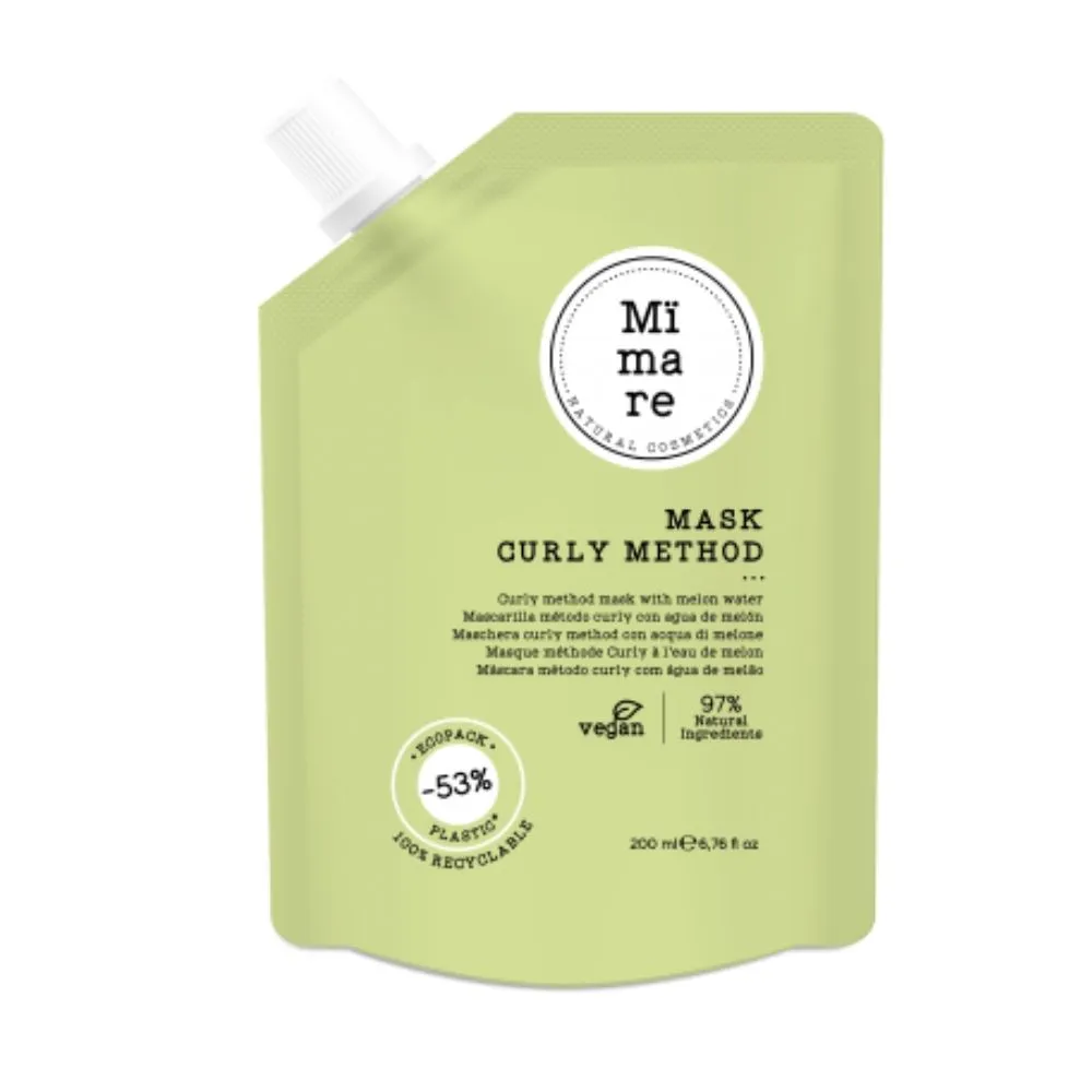 Mascarilla método Curly con agua de melón. Hidrata y recupera el rizo en profundidad ayudándolo a su regeneración.